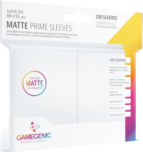Asmodee100 Sleeves per pack Extra-high back-cover opacity, even on lighter colors Matte foil averting symptoms of eye fatigue during gameplay Ideal fit...
