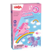 In a land, far, far away lived four unicorns who were the best of friends. They enjoyed galloping across the soft, billowing clouds, sliding down rainbows and playing with cloud crystals. One day, they noticed a terrible thunderstorm approaching. They thought it would be best to head directly for the sun, and collect as many cloud crystals as possible along the way to keep them safe from the storm. Players start by choosing a colored unicorn and placing their piece on the big blue rain cloud. The player who reaches the sun cloud with the most cloud crystals is the winner. A sparkling die competition!