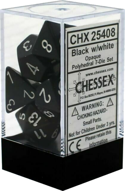 CHX 25408 Opaque Black/white Polyhedral 7-Die Set