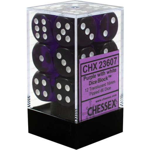 CHX 23607 Translucent Purple/white 12D6 Dice Block
