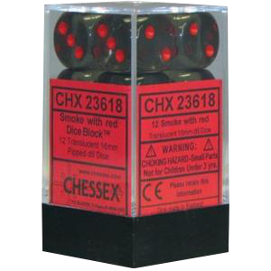 CHX 23618 Translucent Smoke/red 12D6 Dice Block