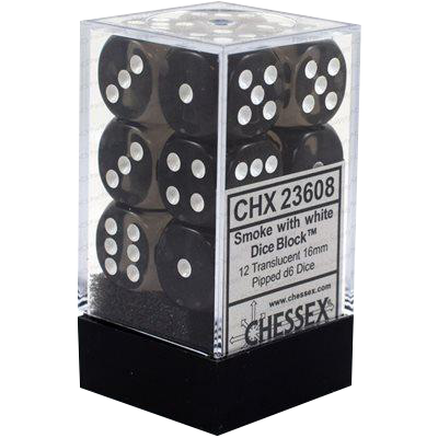 CHX 23608 Translucent Smoke/white 12D6 Dice Block