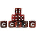 These 16mm dice contain a mixture of red swirled with deep blacks. The Conquest logos are on the ONE side.